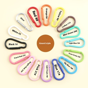 ห่วงคาราบิเนอร์สีเหลืองรูปน้ำเต้าคาราบิเนอร์หัวเข็มขัดตะขอเกี่ยวรวดเร็วทำจากวัสดุอัลลอยด์พวงกุญแจโลหะทาสี